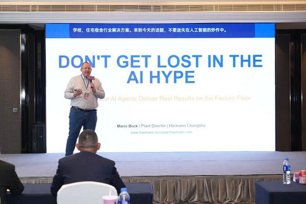 霍曼门业(常熟)总监Mario Bock带来《Don‘t Get Lost in the AI Hype: How RPA and AI Agents Deliver Real Results on the Factory Floor》的英文演讲。他表示,工厂管理者30%-40%的管理时间正被重复任务、手动ERP错误、邮件协调消耗。而RPA+AI Agent的组合已在霍曼实现设计自动化、数字供应链等场景中实现70%成本下降、3倍ROI、零错误的真实成果。